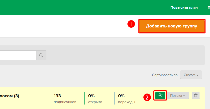 Для импорта базы переходите в раздел «Подписчики» и создаёте новую группу, нажав на кнопку «Добавить новую группу». Вводите название группы и готово.