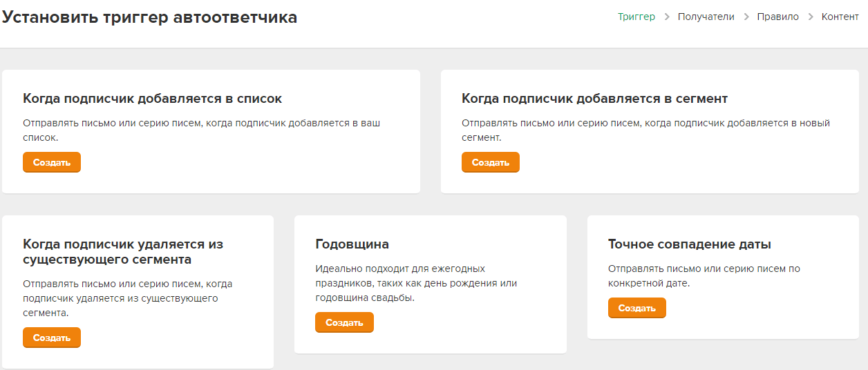 Когда ваш подписчик совершает какое-то действие, например, регистрируется или покупает какой-то товар, он попадает в определенную группу, и ему начинает отправляться серия писем, которая заранее была написана для подписчиков этих групп.