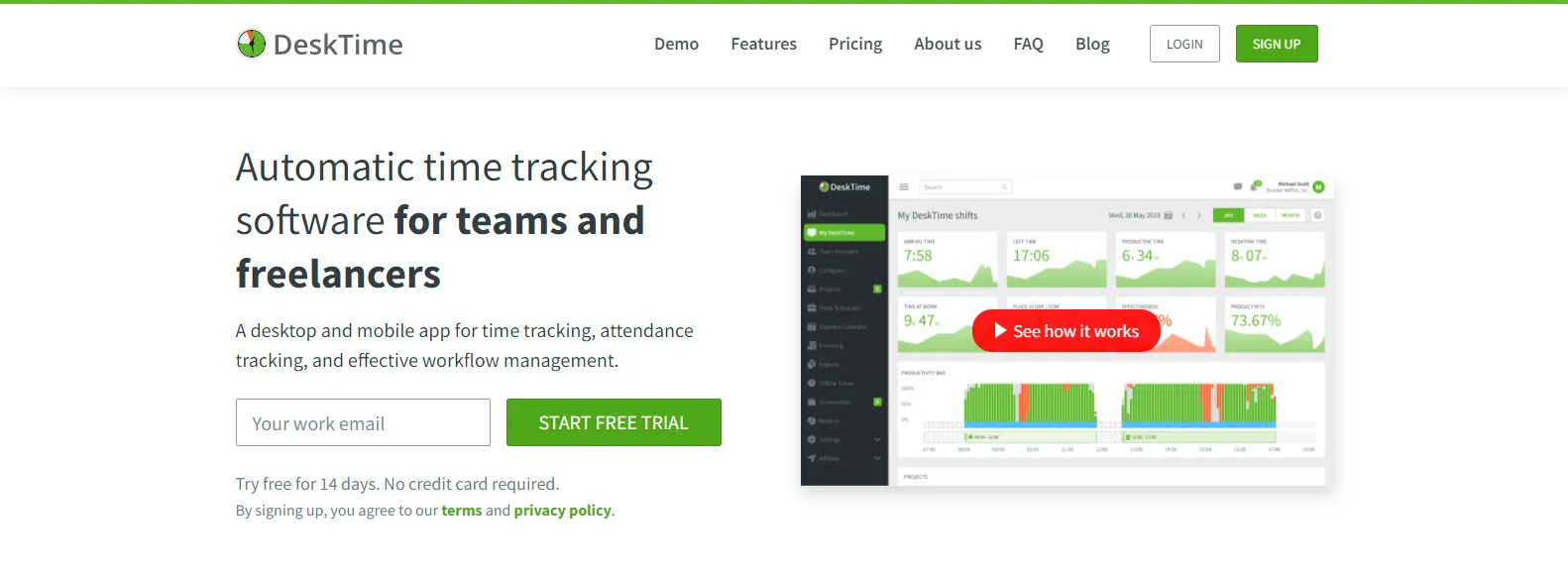 У DeskTime есть бессрочный бесплатный план для одного пользователя, а также 14-дневная бесплатная пробная версия для премиум-планов.