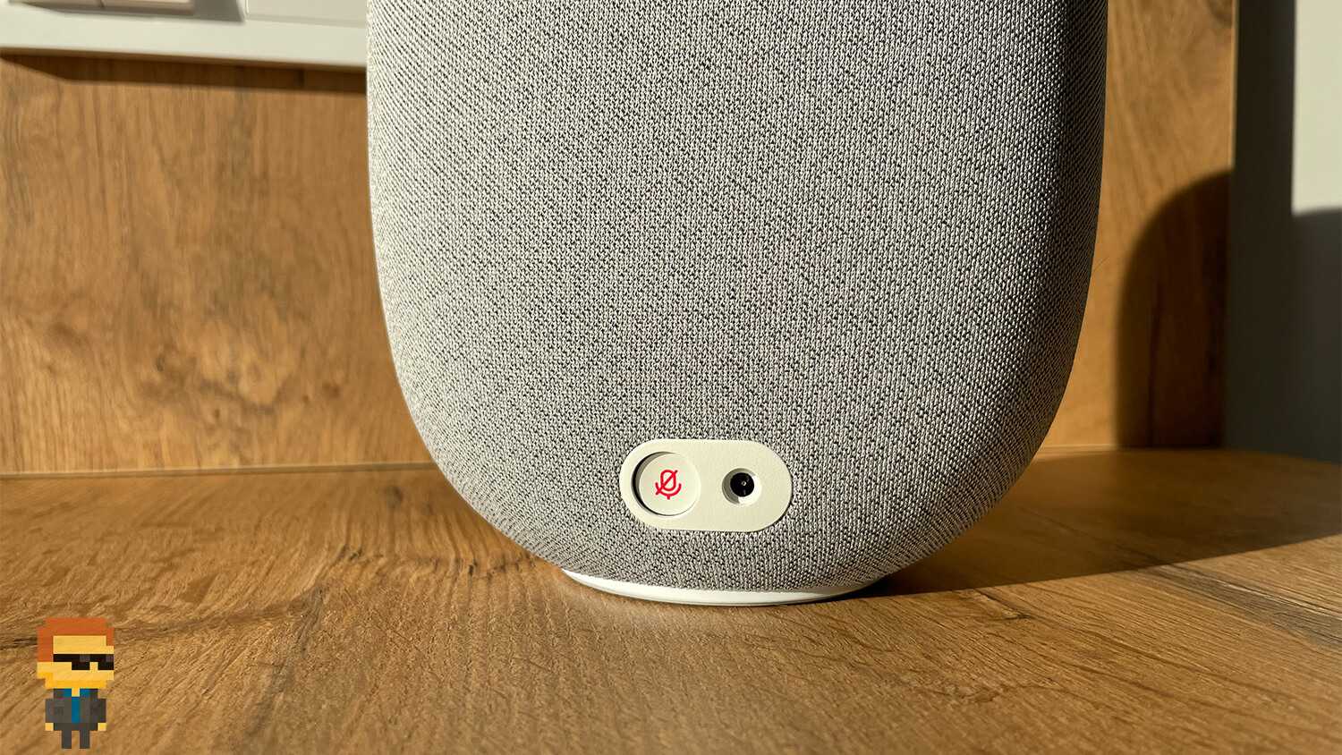 Большая часть площади корпуса покрыта акустической тканью. Она прилегает намертво, твёрда на ощупь, а само плетение максимально мелкое. Те, кто уже имел дело с устройствами из такого материала, знают: всё это – плюсы. Со временем акустическая ткань крупного и/или мягкого типа плетения загрязняется естественным путём. В случае с Капсулой мини это должно произойти намного позже, чем, скажем, с HomePod mini.