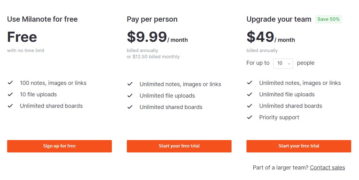 On the other hand, business owners with a team can avail their enterprise plans. For this option, Milanote asks $49/month for annual plans for 10 users, which can save you up to 50% of its SRP. The price may vary if you want to increase the number of users to collaborate under your account.