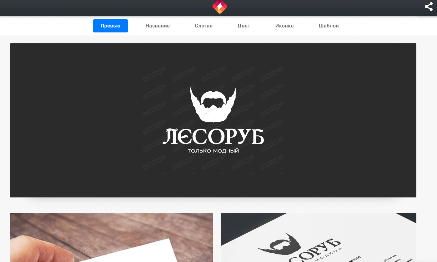 Turbologo — русскоязычный генератор логотипов, сам предлагает готовые варианты после настройки.Покупка большого файла обойдется в 790 рублей, маленький можно скачать просто так.