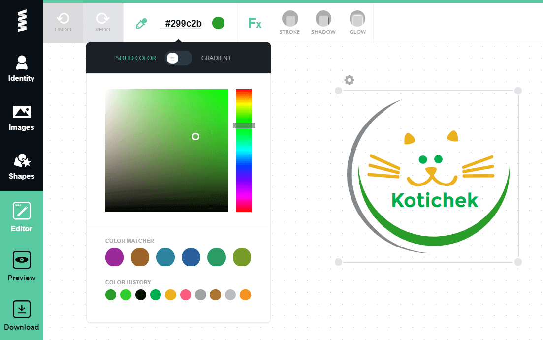 But there isn’t much to be expected with the editors so I would say there’s very little customization that you can do here. However, if you’re subscribed to the Pro plan, you also get the raw and editable file for your logo.
