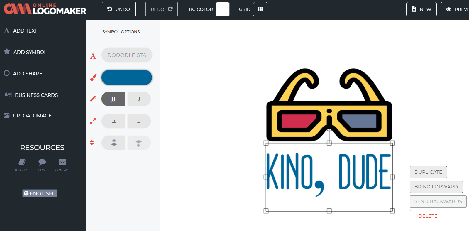 Apart from that, it has a top-bar which has options such as Make Logo, Create Video, Design Website, Pricing, Support, Blog etc. Pretty easy to understand options.