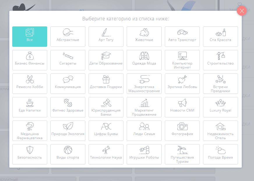 В новом окне представлено более 250 иконок, которые ассоциируются с названием или нравится изображение. Для подтверждения выбора нажмите на понравившийся рисунок.