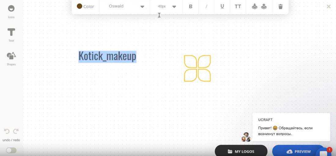 Самостоятельно создание логотипа при помощи сервиса Ucraft