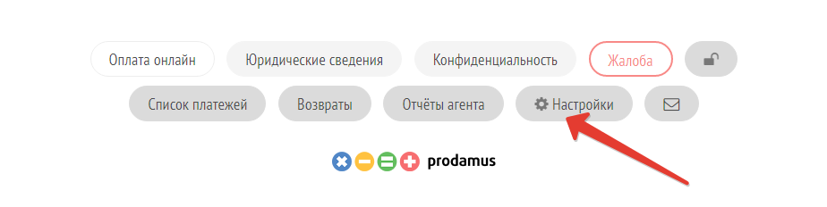 Авторизуйтесь на своей платежной странице в Продамус. Затем перейдите в раздел «Настройки»