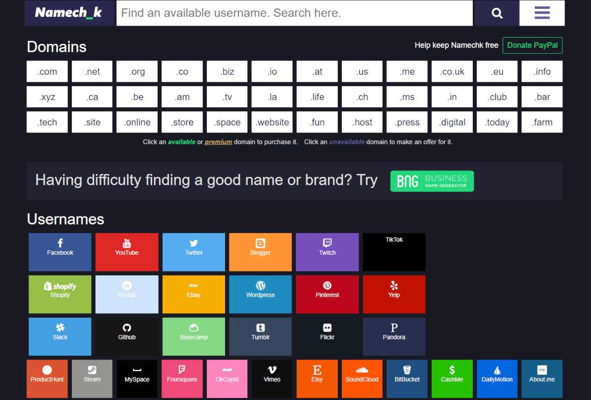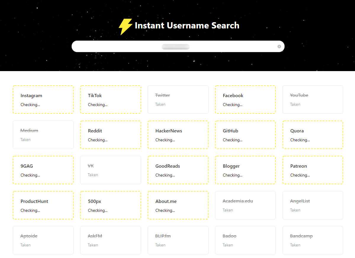 Список веб‑сервисов у Namecheckr небольшой, но и проверка очень быстрая. Сами сервисы по большей части популярные и не очень соцсети. Проверяет и некоторые домены.