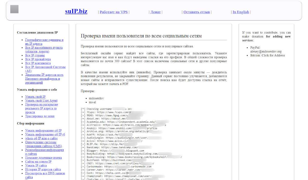 SuIP.biz — постоянно обновляемая и обширная база сервисов с удобной выдачей. Время проверки — где‑то одна‑две минуты. Минус — деления на категории нет.