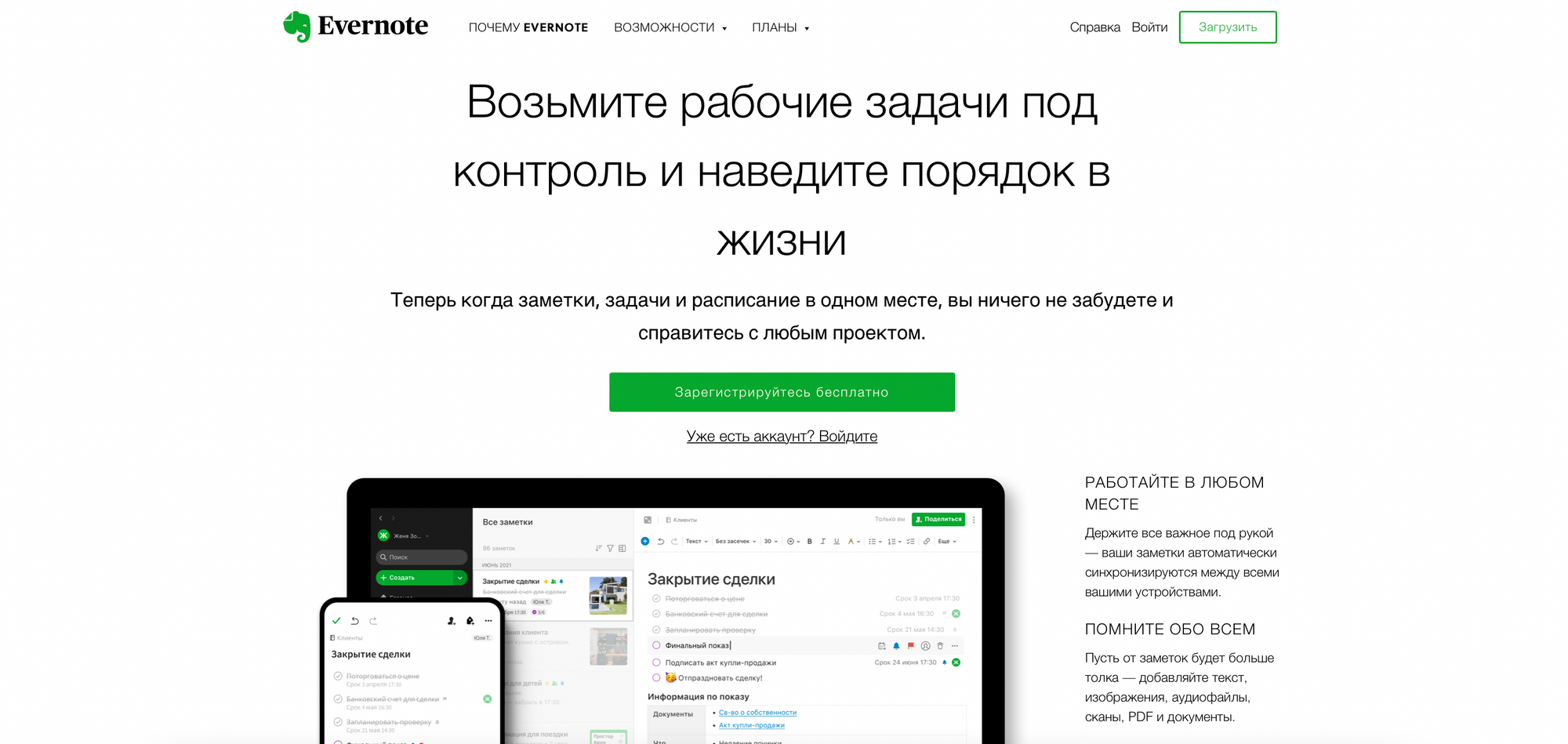 Основные функции и особенности Evernote