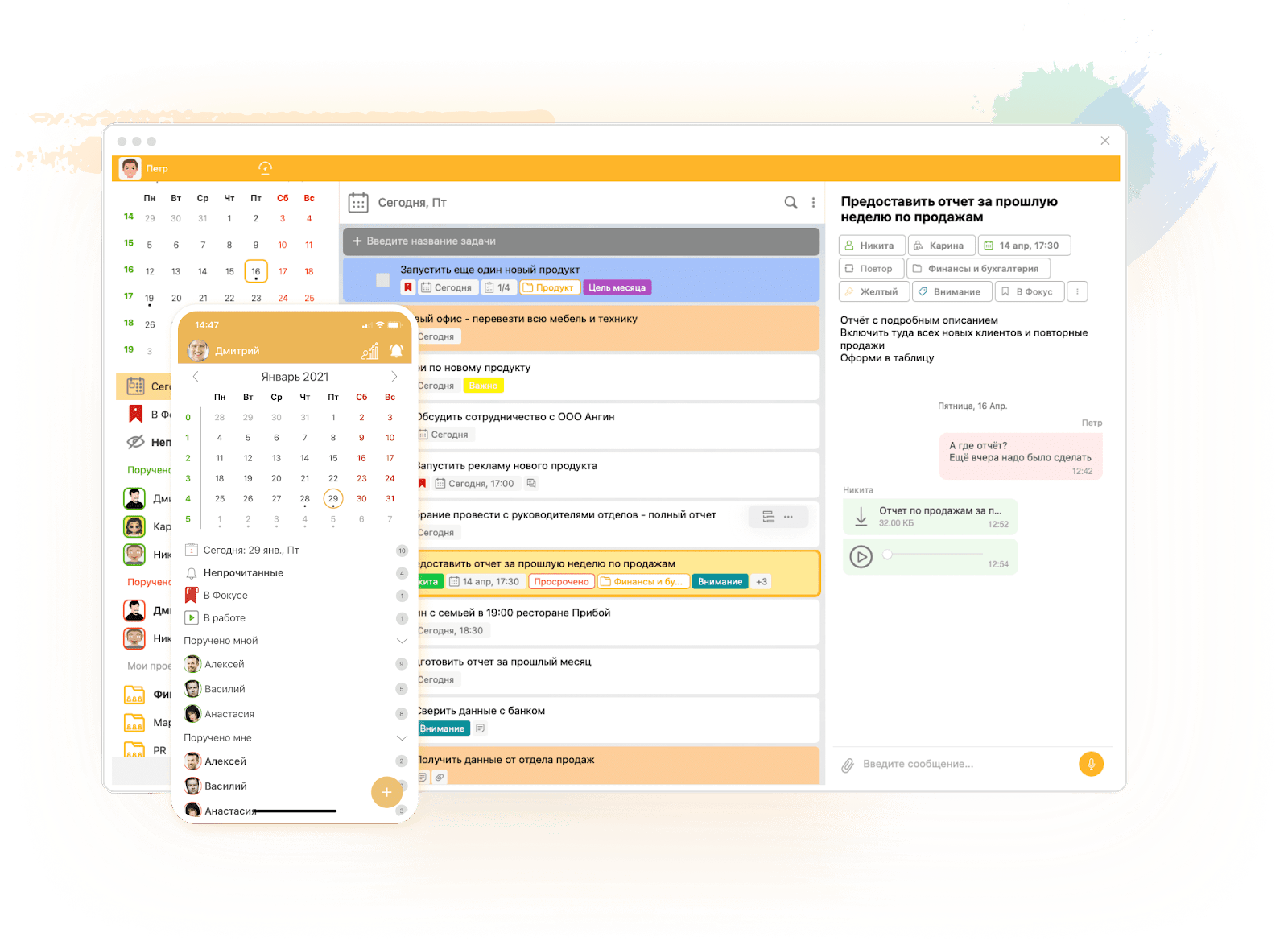 Приложение призвано помочь эффективно решать задачи как обычных пользователей, так и корпоративного сегмента, где нужно контролировать выполнение поручений сотрудников на постоянной основе.