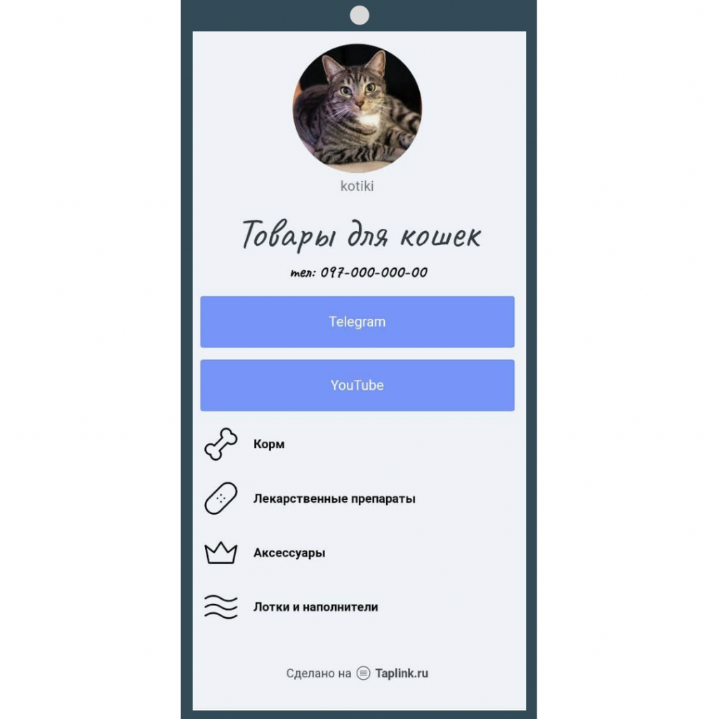 Сервис TapLink специализирован под создание мультиссылок. Это самая популярная площадка для верстки мини-лендингов на конструкторе. Ресурс настолько распространен, что его имя стало нарицательным — мультиссылки часто называют таплинками.