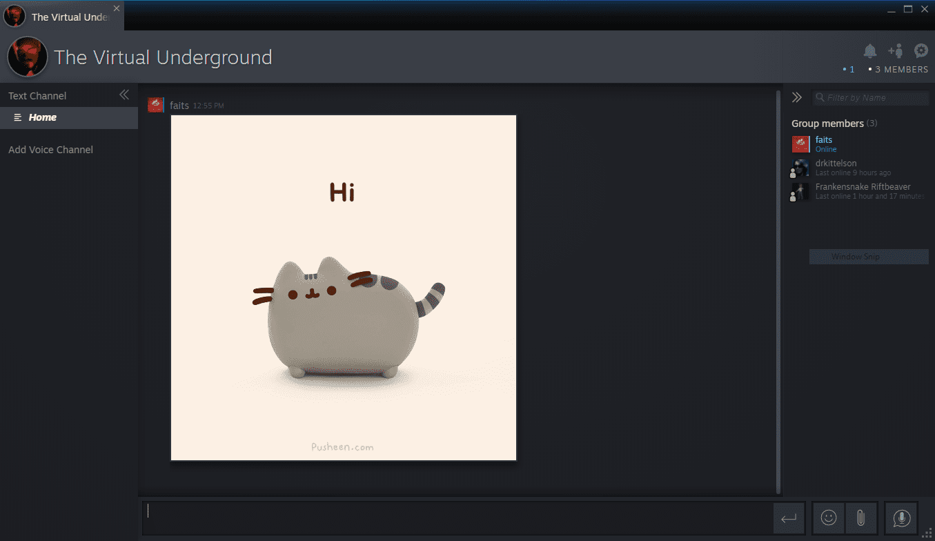 Голосовой чат Steam работает хорошо, что ожидаемо от продукта под таким брендом. В чате легко можно обмениваться различными типами медиа, например, GIF или аудиозаписями. К тому же хаб чата упрощает управление.