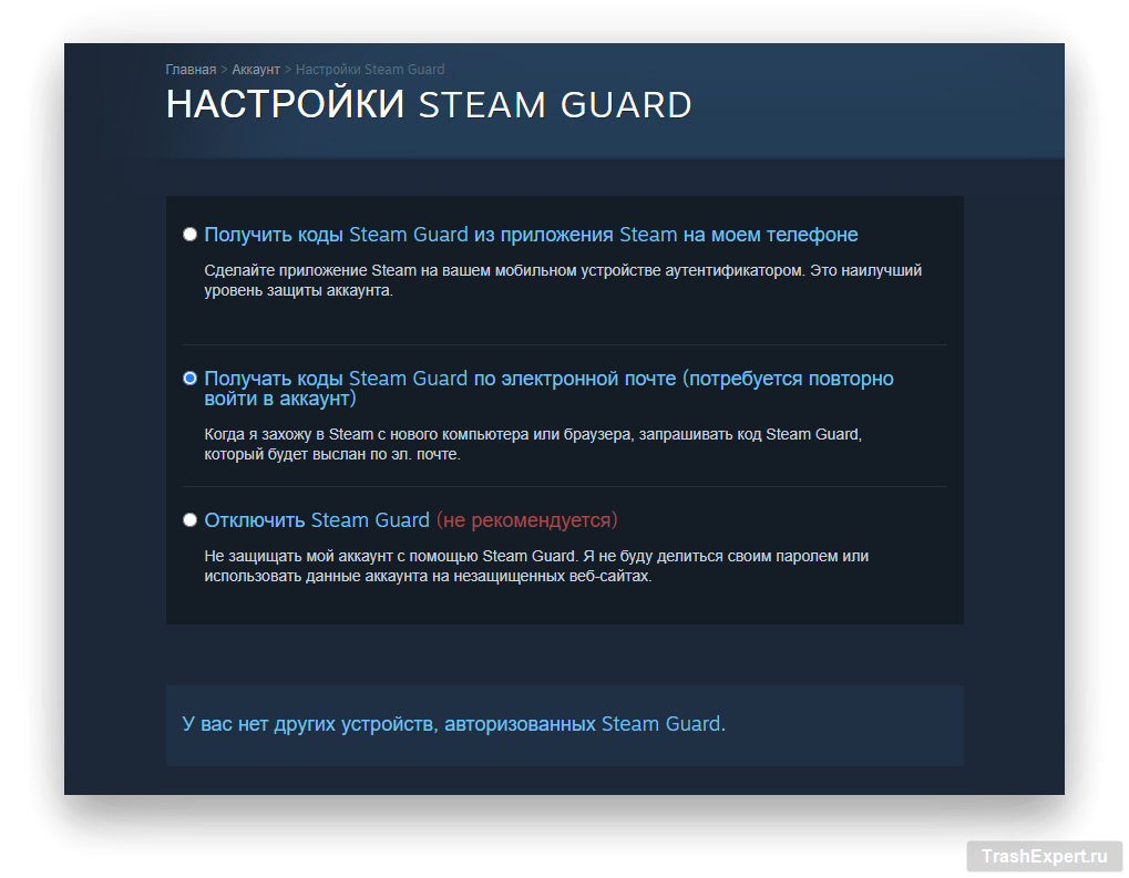 Когда в учётной записи включена опция Steam Guard, нужно ввести специальный код доступа при входе в учётную запись с неизвестного устройства. В зависимости от настроек Steam Guard вы получите письмо по электронной почте с кодом или код придёт в мобильное приложение Steam Mobile. Для активации опции в сервисе Steam откройте Настройки > Аккаунт > Управление настройками Steam Guard.