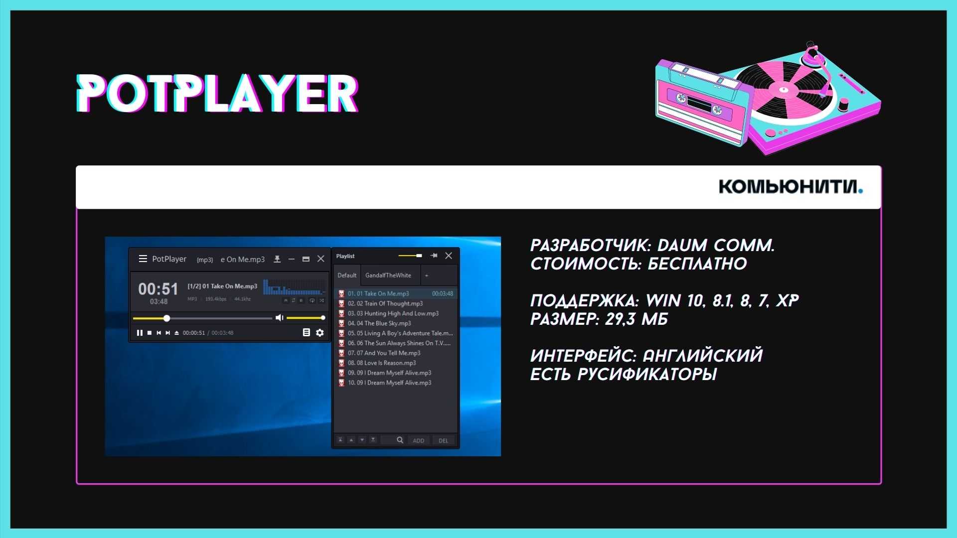 Полное название этого медиаплеера – Daum PotPlayer. Бесплатная, многофункциональная утилита напоминает KMPlayer (создала их одна и та же компания), только вот PotPlayer – гораздо более современный и продуманный, чем его «предшественник».