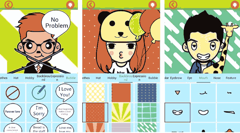 Как следует из названия, это приложение предназначено для тех случаев, когда вам нужны эмодзи, похожие на карикатуры. Оно предлагает разнообразный выбор при выборе лица, глаз, одежды, аксессуаров, цветов и многого другого.