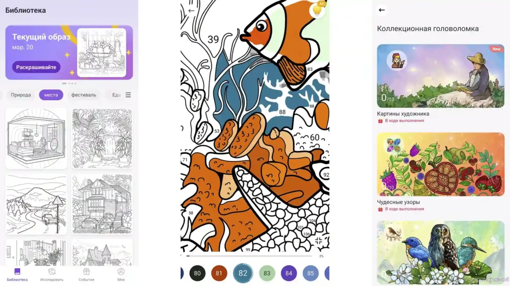 Книжка-раскраска — еще одно приложение для раскрашивания по номерам с множеством функций. Он дает советы людям, не имеющим опыта в раскраске, и предлагает уникальные произведения искусства, которые можно раскрашивать каждый день, чтобы поддерживать вашу повседневную жизнь.
