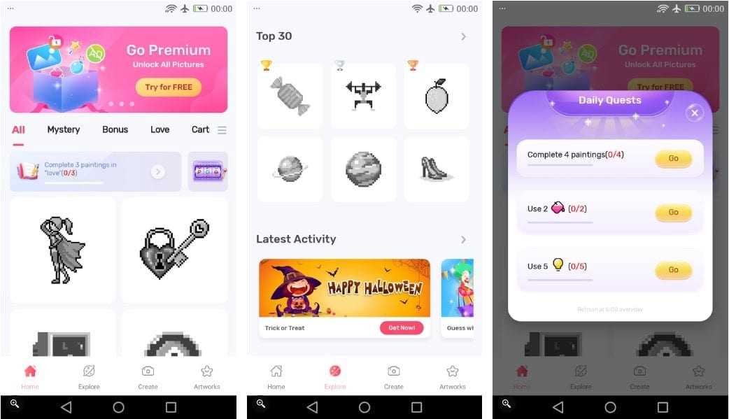 Как и некоторые другие приложения в этом списке, в этом приложении также есть функция ежедневного поиска, которая поможет вам улучшить результат. Он предоставляет вам множество раскрасок и категорий. Помимо прилагаемых дизайнов, вы также можете создавать собственные изображения из фотографий вашей галереи.