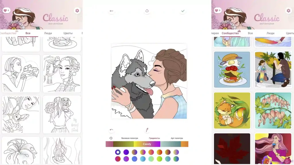 Антистрессовое приложение с сотнями увлекательных раскрасок для взрослых поможет отдохнуть или отвлечься после тяжелого рабочего дня. Каталог включает подборки картинок разных тематик. Все они нарисованы опытными дизайнерами. Поэтому творческое удовольствие гарантировано. Достаточно выбрать понравившуюся заготовку и приступить к работе.