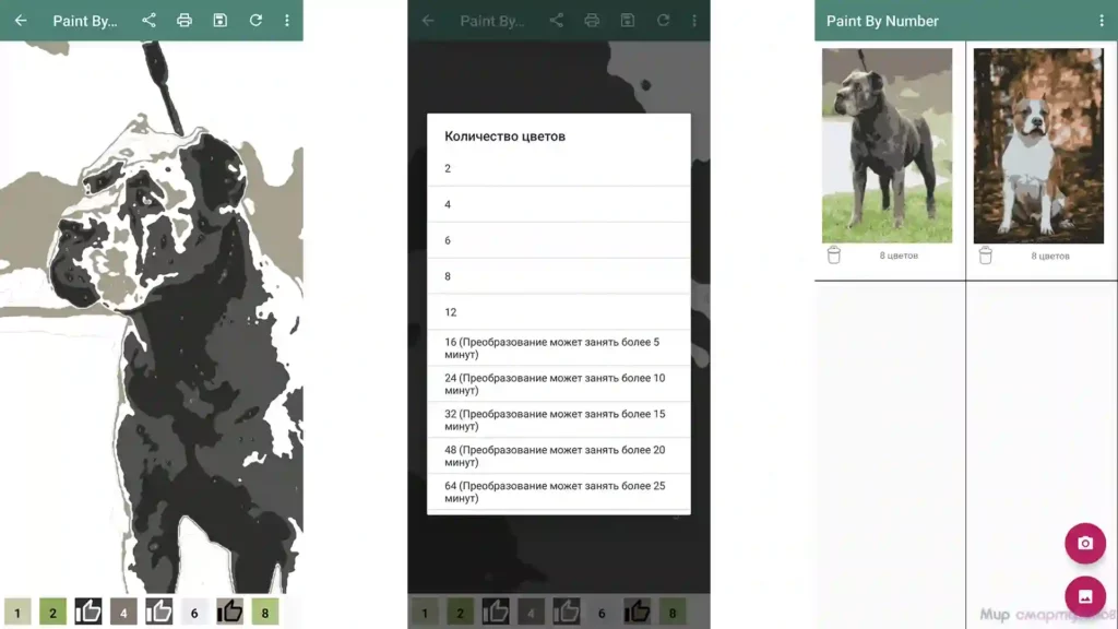 Оригинальное приложение для создания собственных раскрасок по номерам с любым количеством деталей. Оно не имеет лишних функций, усложняющих творческие процессы. Достаточно выбрать сохраненное на устройстве изображение или сделать фото и загрузить его в приложение. После этого останется выбрать желаемое количество оттенков и дождаться обработки.