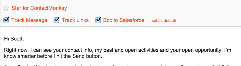 При написании письма, сверху отображается галочка отслеживаний и SalesForce… в принципе больше ничего полезного: