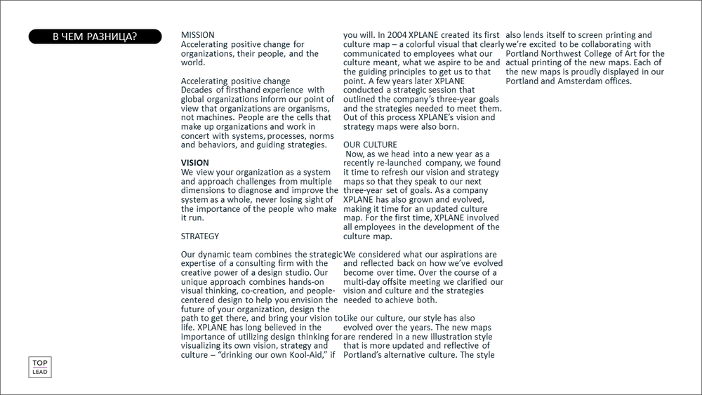 Как ты думаешь, какой из вариантов описания миссии, видения и ценностей компаний проще воспринять и запомнить?