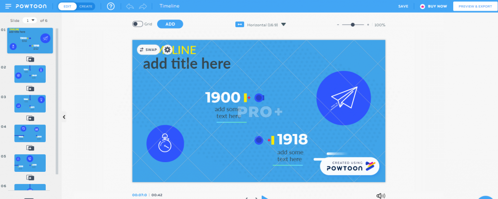 Это еще одна платформа, на которой есть возможность сделать видеоинфографику. Интерфейс сайта и редактора – англоязычный.