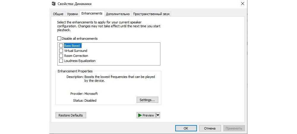 Поставить галочку на пункте «Disable all enhancements». Подтвердить действие, нажав «Применить» – «Ок».