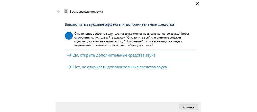 Далее мастер предложит несколько вариантов, один из них – выключение звуковых эффектов для улучшения качества воспроизведения.