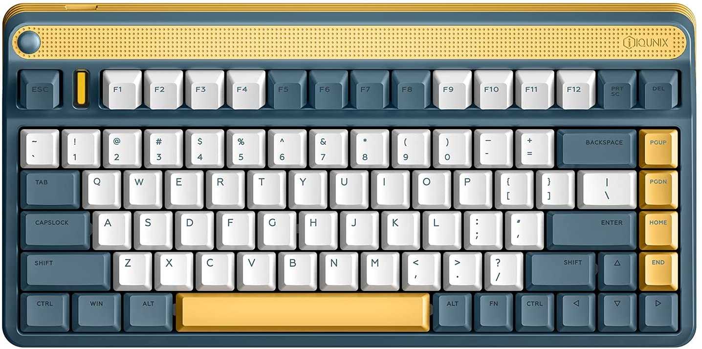 iQunix A80 Explorer представляет собой клавиатуру в стиле ретро с современными функциональными возможностями. Среди них высококачественные красочные клавиши PBT и тихие стабилизаторы в компактном формате с возможностью применять беспроводной ключ 2,4 ГГц или Bluetooth.
