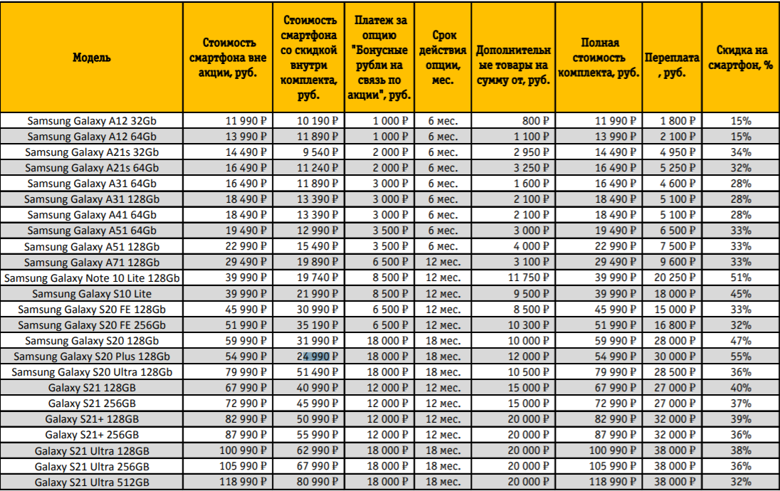 Условия акции «Самсунг Галакси А30 за 99 рублей в месяц»