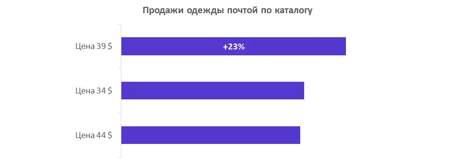 В 2003 году было опубликовано совместное исследование Эрика Андерсона из Чикагского университета и Дункана Симестера из Массачусетского технологического института, в котором они разбили клиентов каталога одежды почтой на 3 группы. Каждой выборке отправили разные экземпляры каталога, где на одни и те же товары были цены 34 $, 39 $ и 44 $. В итоге позиции за 34 $ и 44 $ продавались почти одинаково, а вот одежду за 39 $ продали на 23% больше.