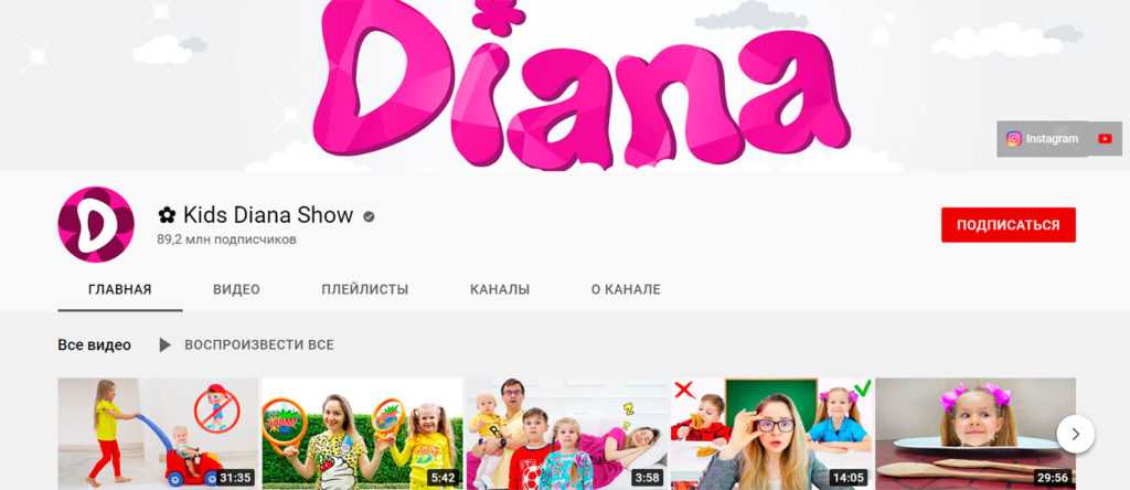 | 12 | 12 (2020 — н.в.) | Kids Diana Show | 48.2M | 676 | Русский |