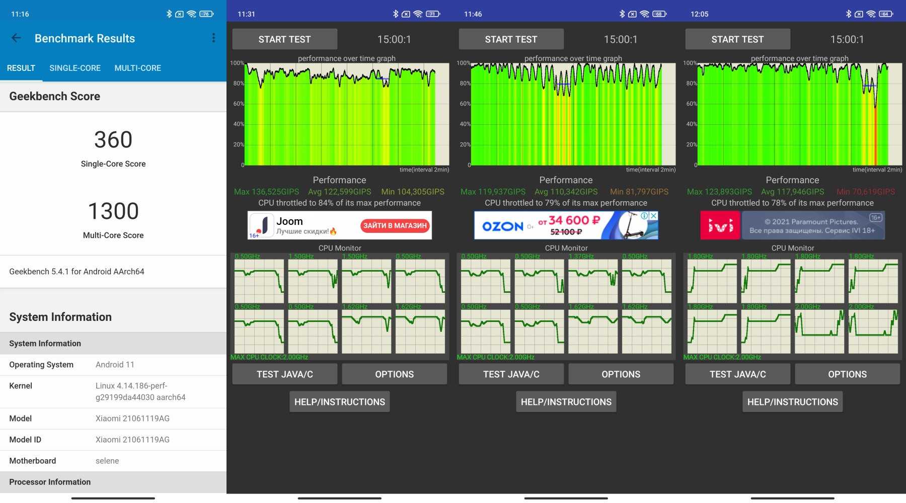 В тестах с использованием GeekBench 5 A15 Bionic набрал 1740 баллов в однопоточной производительности ЦП и 4758 баллов в многопоточной производительности ЦП. Если сравнивать: у Snapdragon 888 5G 1134 балла в одноядерном тесте и 3707 баллов во многоядерном. А Kirin 9000 набрал 1049 и 3728 баллов соответственно.