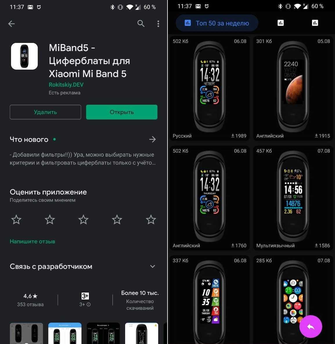 Установка кастомных циферблатов из неофициальных приложений для Xiaomi Smart Band 5