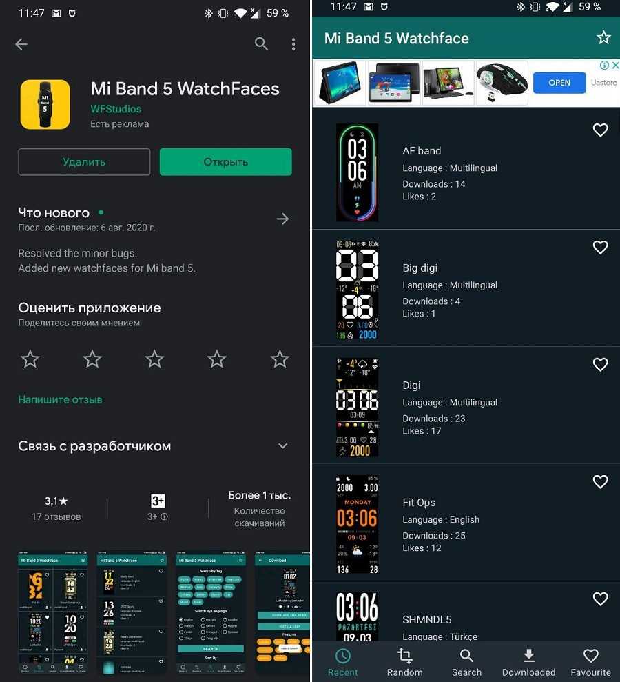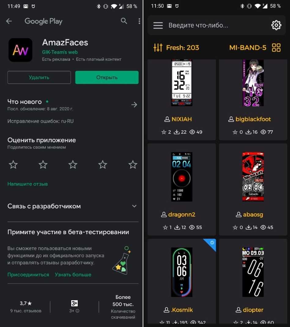 AmazFaces. Изначально программа предназначена для девайсов Amazfit, но в ней есть вкладка с немалым количеством качественных и ярких циферблатов для Mi Band 5.