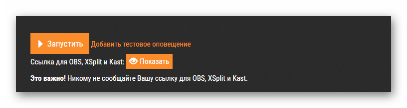 Когда сайт получит доступ к твичу, переходите в настройки и выполните процедуры по аналогии с инструкцией к предыдущей платформе: подключите наиболее удобный способ вывода средств и настройте оповещения для получения донатов. После этого Вам останется лишь скопировать ссылку и вновь разместить ее под Вашим стримом, чтобы зрители получили к ней доступ.