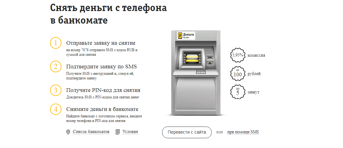 Также можно снять наличные напрямую с банкоматов «Билайн.Деньги».