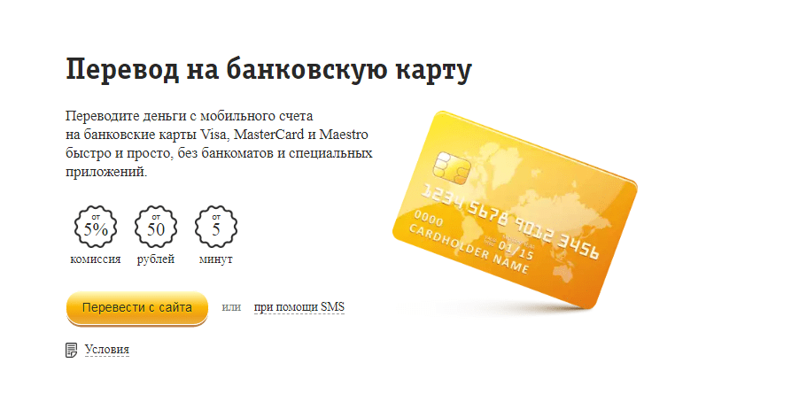 У «Билайна» управление средствами проводится SMS-командами и при помощи сервиса «Билайн.Деньги» в интернете. Вывести деньги можно на карты Visa, Meastro и Master Card. Для перевода при помощи СМС нужно сделать следующее: