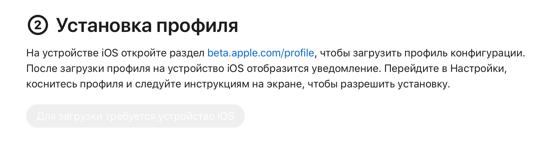 Если зайти с айфона, тут будет надпись «Загрузить профиль»