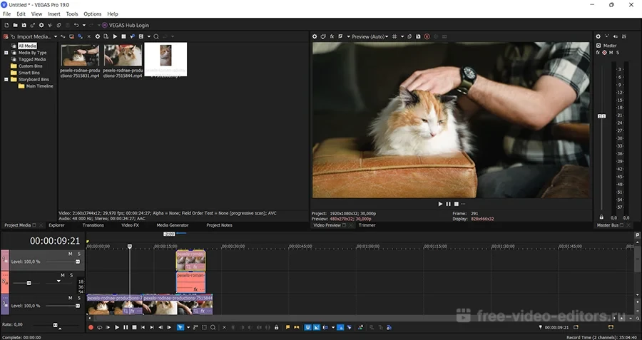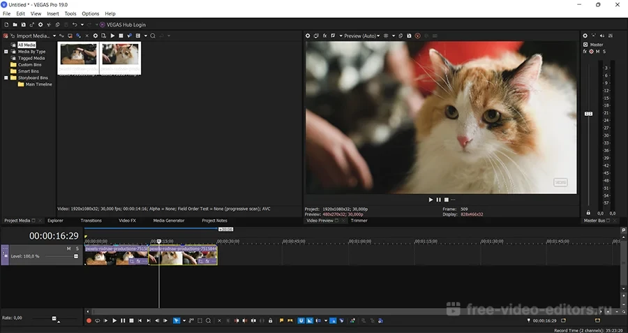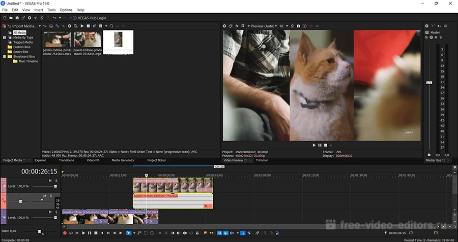 Продвинутые пользователи могут воспользоваться видеоредактором Vegas Pro. Он позволит не только соединить видео в фильм, но и выполнить профессиональную цветокоррекцию, подключить отслеживание движения, фильтры и многое другое.