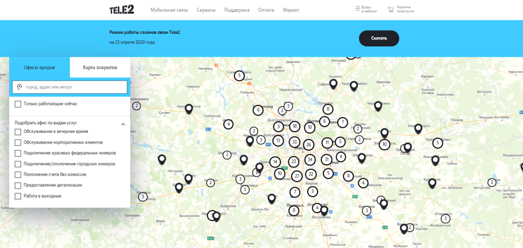 - Посетите ближайший офис продаж в городе. Расположение салонов можно уточнить на официальном сайте или в приложении «Мой Теле2». Попросите продавца предоставить сведения о тарифном плане на симке.
