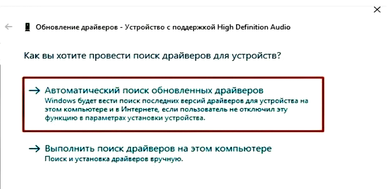 - в следующем меню выберите «Автоматический поиск обновленных драйверов».