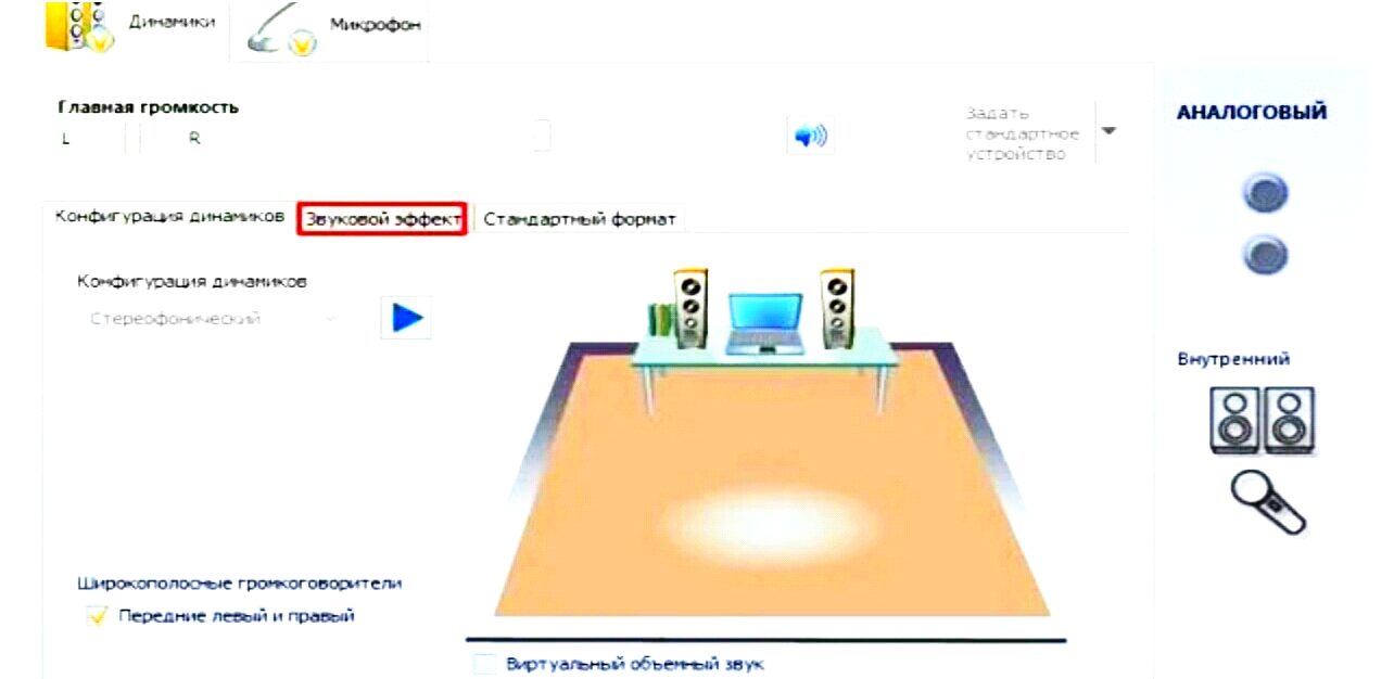 - отыскиваем вкладку «Звук»;