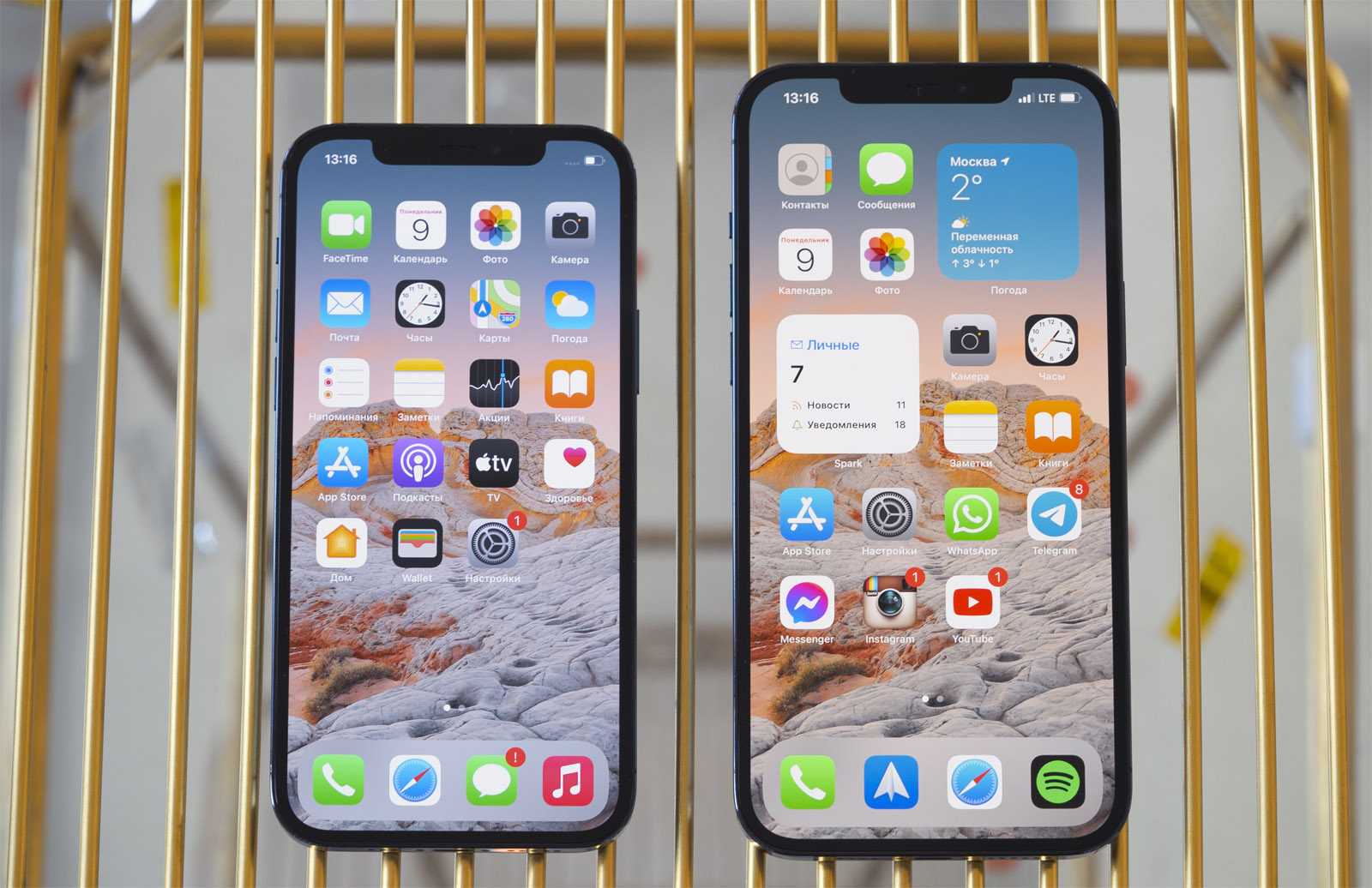 Но по сравнению с iPhone 12 на 6,1 дюймов информации влезает меньше. При этом элементы интерфейса (шрифты, иконки) слегка компактнее. Если смотреть видео с соотношении сторон 16:9, не растягивая, то размеры картинки практически идентичны.