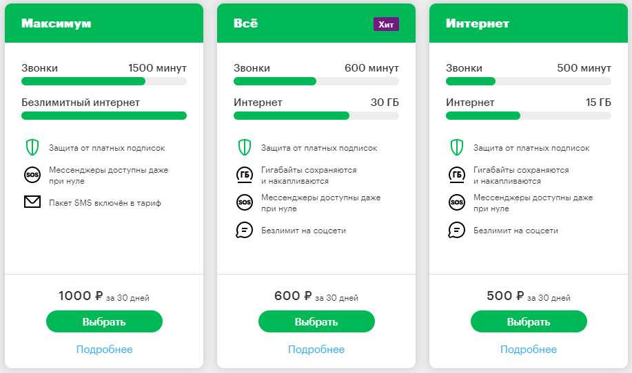 Не зря этот тариф отмечен на сайте плашкой Хит: из всех остальных он смотрится наиболее сбалансированным по условиям и услугам.