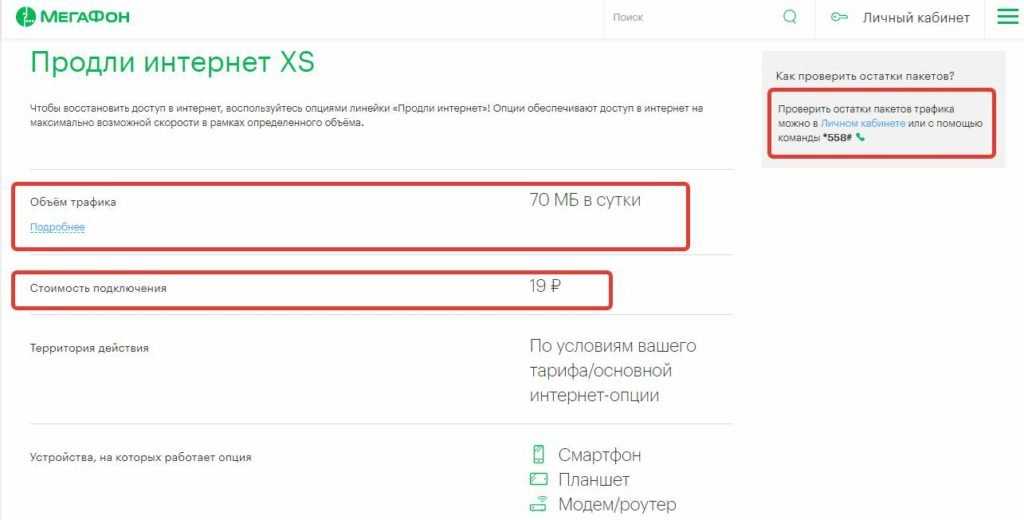 Продление трафика Мегафон на день с услугой «Продли скорость XS»
