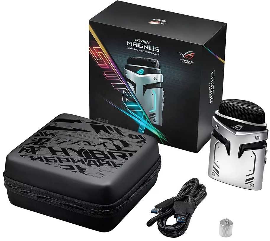 Asus Rog Strix Magnus — профессиональный игровой микрофон, который демонстрирует высокое качество звука и минимальный уровень шума. В работе устройства задействовано 3 диаграммы. Дизайн корпуса обладает RGB-подсветкой, которая красиво выглядит при любом освещении.