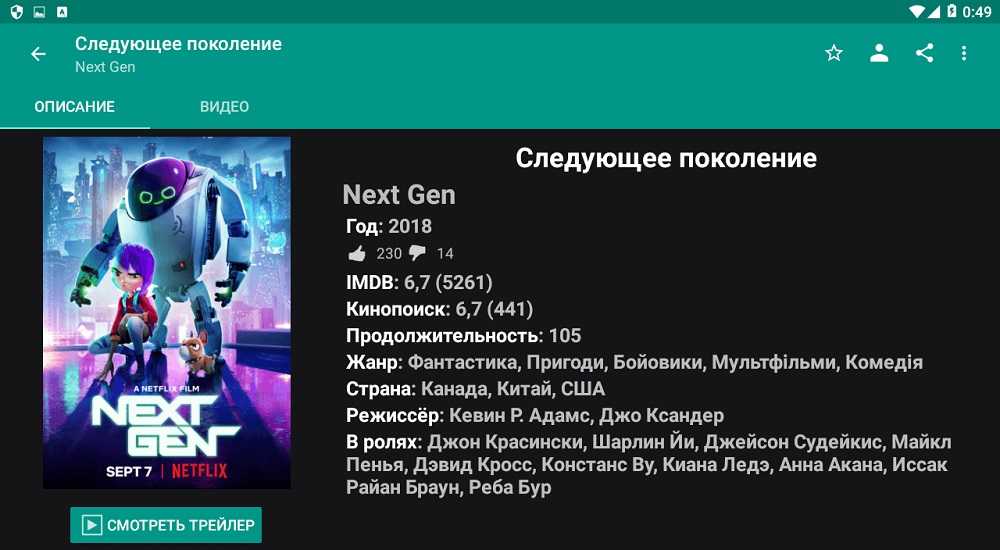 И, конечно же, уже многим знакомый KinoPlay. Сервис относительно новый, но при этом стремительно завоевывает популярность среди зрителей. Вы сможете забыть про любые ограничения, так как пользоваться KinoPlay можно с любого устройства. Каталоги постоянно пополняются новыми фильмами, поэтому у вас открывается возможность смотреть то, что вы хотите — жанры есть на любой вкус. Помимо этого, файл можно скачать из приложения на свое устройство, что особенно актуально при слабом интернет-соединении. Также, перед просмотром фильма или сериала, в приложении вы сможете ознакомиться с трейлером и анонсом.