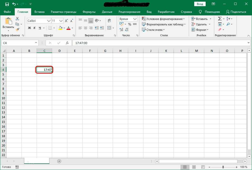 - Присвойте этой ячейке формат «Время».